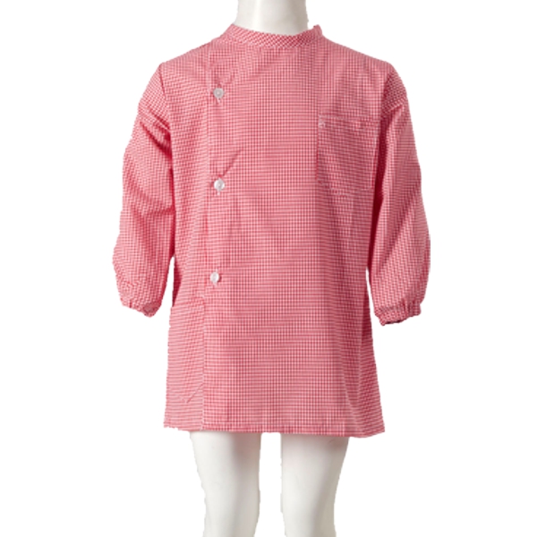 A Bata Escolar Rapaz, é uma bata de padrão aos quadrados , com mangas compridas e gola redonda.