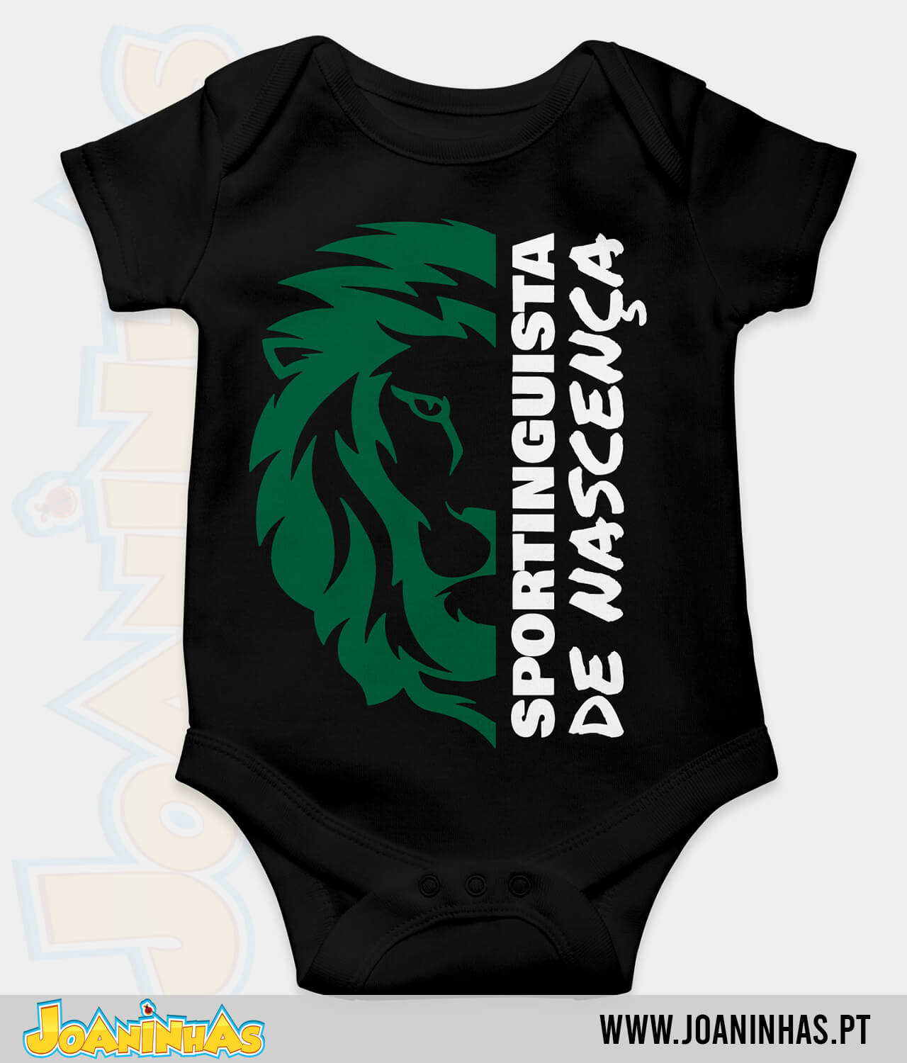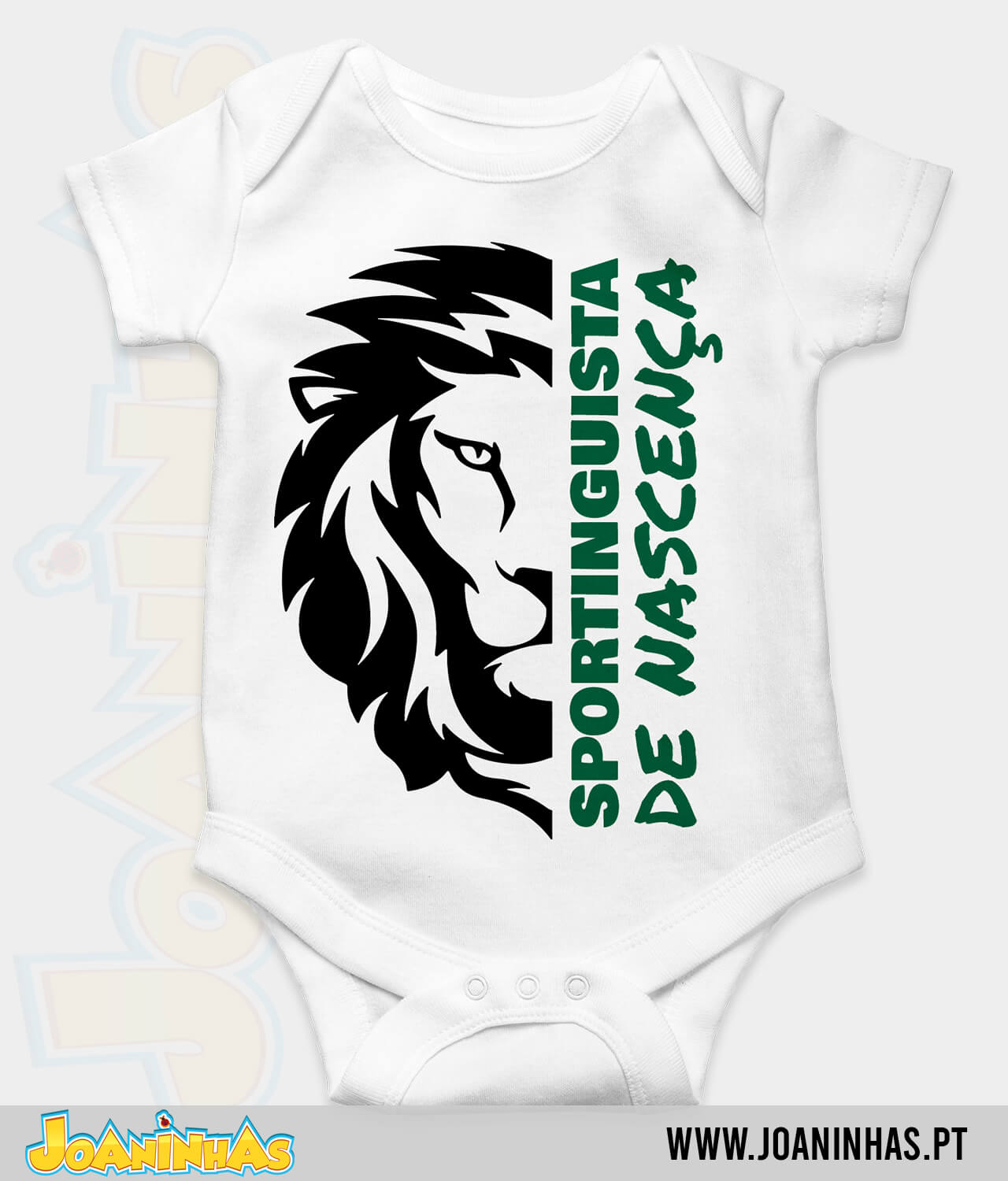 Se existe forma melhor de mostrar que a paixão pelo clube não escolhe idades, o Bodie Sportinguista de nascença é, sem dúvida, a prova. Inspirado no símbolo do leão, o desenho imponente da cabeça felina avisa todos que, mesmo sem falar, o bebé já traz o sangue verde. A frase “Sportinguista de nascença” em vertical completa a mensagem, enfatizando que o amor ao clube brota desde o berço. Cada vez que o olhares, lembrarás que se nasce leão, não se faz leão.