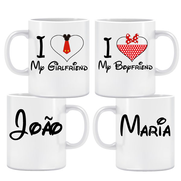 O produto Canecas Mr Mickey e Mrs Minnie, trata-se de um pack de duas canecas personalizada pertencente à colecção Mr Mickey & Mrs Minnie onde poderá também encontrar entre outros produtos: Pack T-Shirt , Pack Sweat e Pack Hoodie.