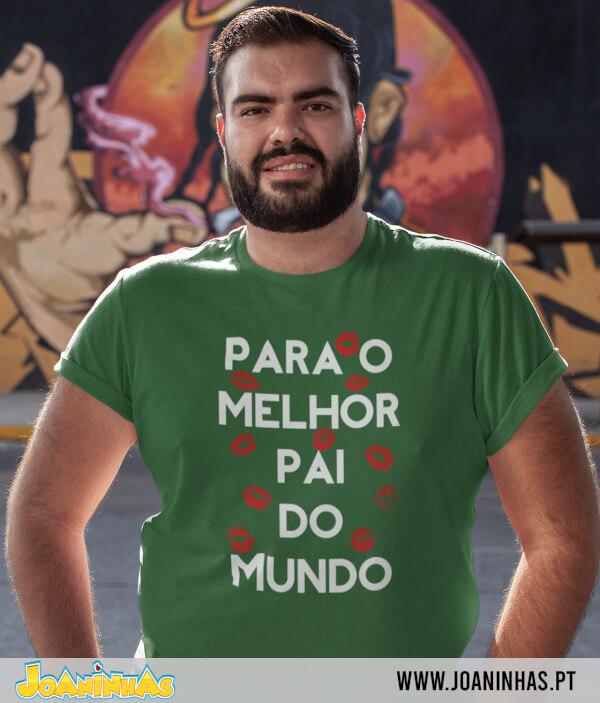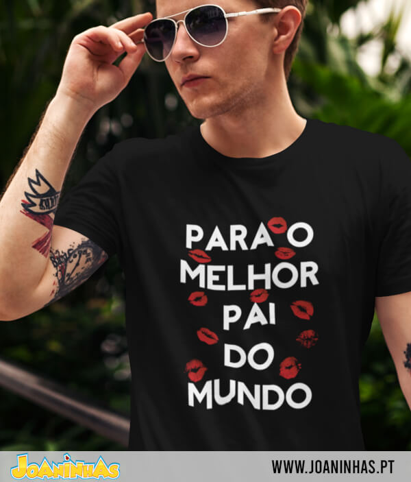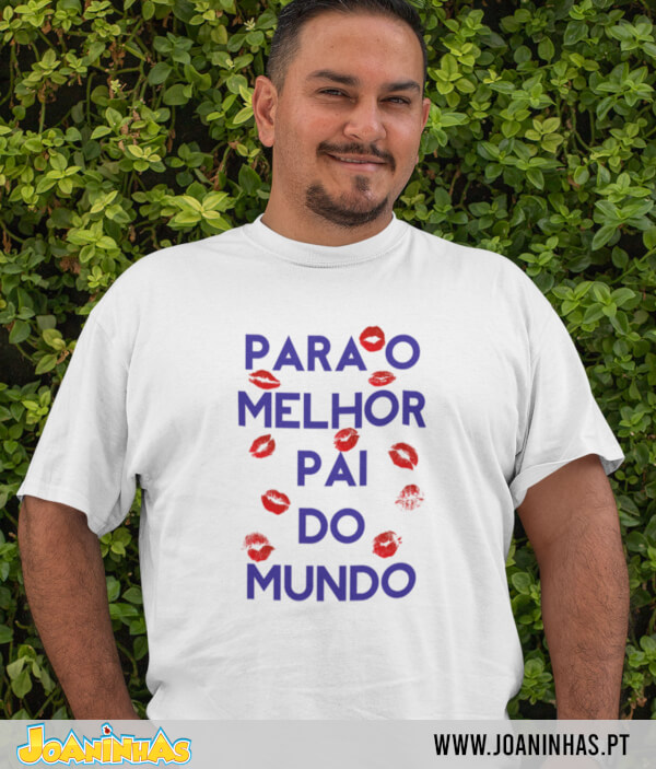 Na T-shirt Dia do Pai Beijos a frase“Para o melhor Pai do Mundo” surge em letras que chamam a atenção, rodeadas de marcas de beijo, em tons que lembram a maquilhagem das meninas que adoram mimar o pai. Este estilo dá cor e alegria, mantendo um ar descontraído para usar em qualquer ocasião. Combina facilmente com calças de ganga ou calções, garantindo um visual simples mas cheio de história. O pai que vestir esta t-shirt Dia do Pai Beijos leva consigo a prova de que é amado e recordará o seu estatuto de herói familiar.