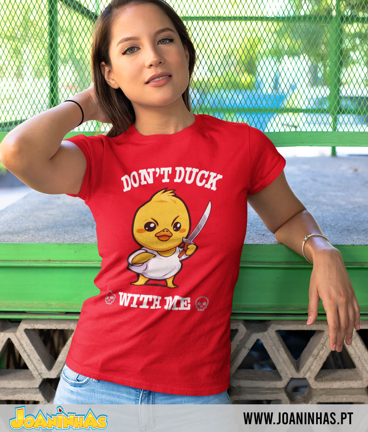 Aproveite esta oportunidade para adicionar um toque de criatividade e diversão ao seu guarda-roupa, enquanto celebra o humor e a atitude com a t-shirt “Don’t Duck With Me”. Não espere mais, faça já a sua encomenda e faça parte desta tendência divertida e original que está a conquistar corações. Arrisque, sorria e mostre ao mundo que você não se deixa abater, tal como o nosso adorável pato de mau temperamento!
