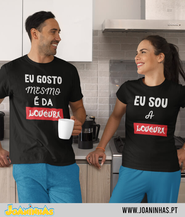 No final de contas, este pack de duas T-shirts é quase uma fotografia do que é a complicidade num casal que não teme mostrar o lado insano e divertido da relação. De um lado, a pessoa que abraça a própria loucura, gritando ao mundo “Eu sou a Loucura”. Do outro, a pessoa que confessa sem vergonha: “Eu gosto mesmo é da Loucura”, porque a normalidade é aborrecida.