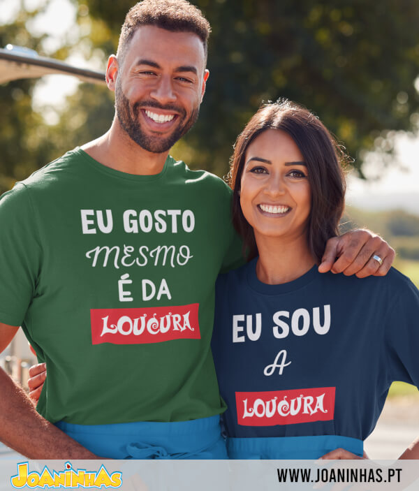 - Loucos Cientes: Quem adora rir de si próprio e do seu parceiro. A T-shirt “Eu sou a Loucura” diz tudo, sem esconder que a vida é uma festa imprevisível.