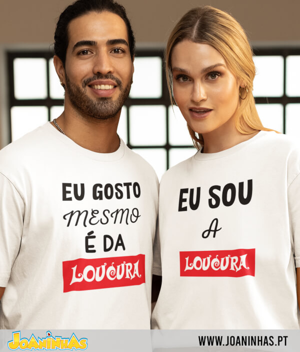 Se calhar, estás a perguntar-te: e não há imagens? Na verdade, a força está na frase. É aquela piada que não precisa de bonecos — a vida já é um circo, e a T-shirt “Eu sou a Loucura” com a outra de “Eu gosto mesmo é da Loucura” complementa-se numa expressão que não exige balões ou corações. Basta que cada um vista a sua parte e, quando se encontram, a magia acontece: o humor conjuga-se e todos entendem que ali reside um amor fora do vulgar.