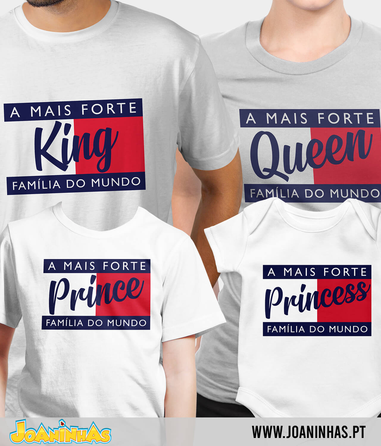 O modelo King Queen Family, pode ser adquirido na versão, T-Shirt, Sweatshirt, Hoodie ou Bodie.