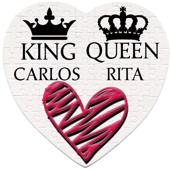Realçamos que tanto no King & Queen Flat Puzzle, tal como nas Canecas King & Queen Flat, pode e deverá escolher os nomes a gravar dos seus futuros donos.