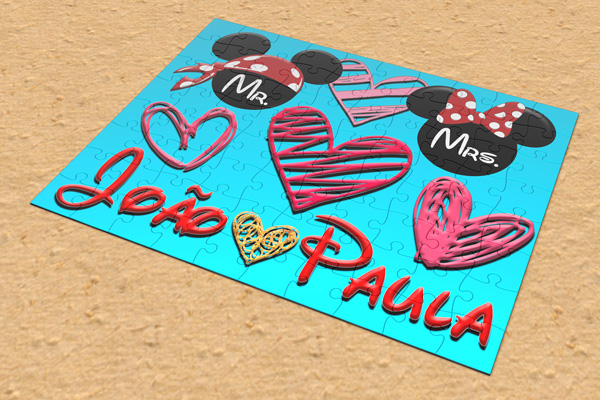 Realçamos que tanto no Mr e Mrs Puzzle, tal como nas Canecas Mr Mickey e Mrs Minnie Piratas, pode e deverá escolher os nomes a gravar dos seus futuros donos.