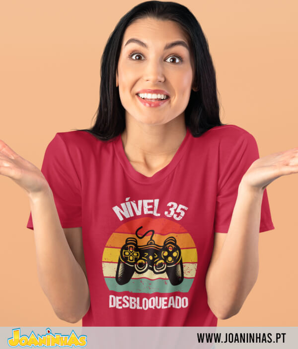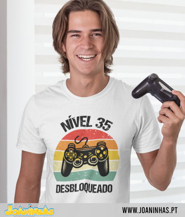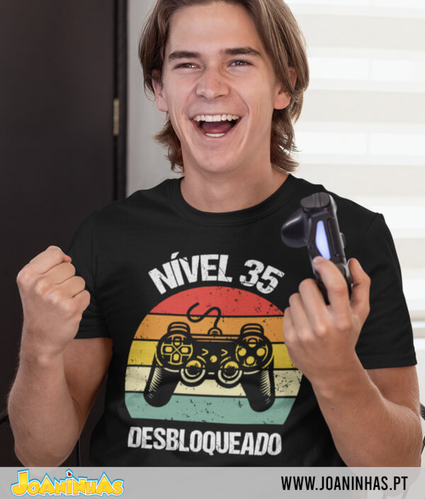 Se procuras o presente perfeito para aquele amigo, irmão, primo ou colega que adora consolas, já ganhaste: a t-shirt Nível Desbloqueado vai deixá-lo(a) a sorrir do primeiro ao último pixel. É original, divertida e personalizada com a idade do aniversariante. Para aniversários que são um verdadeiro boss level!