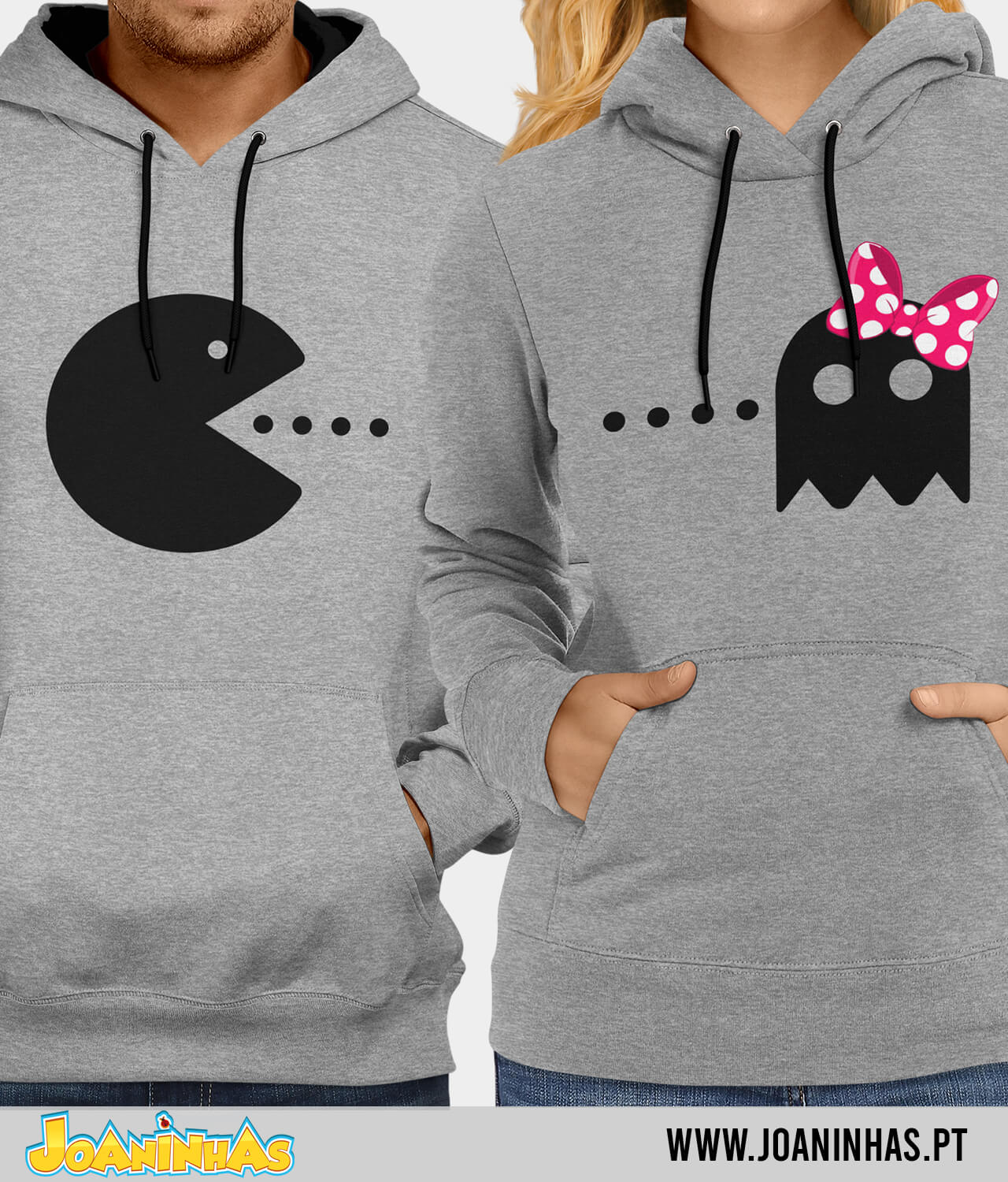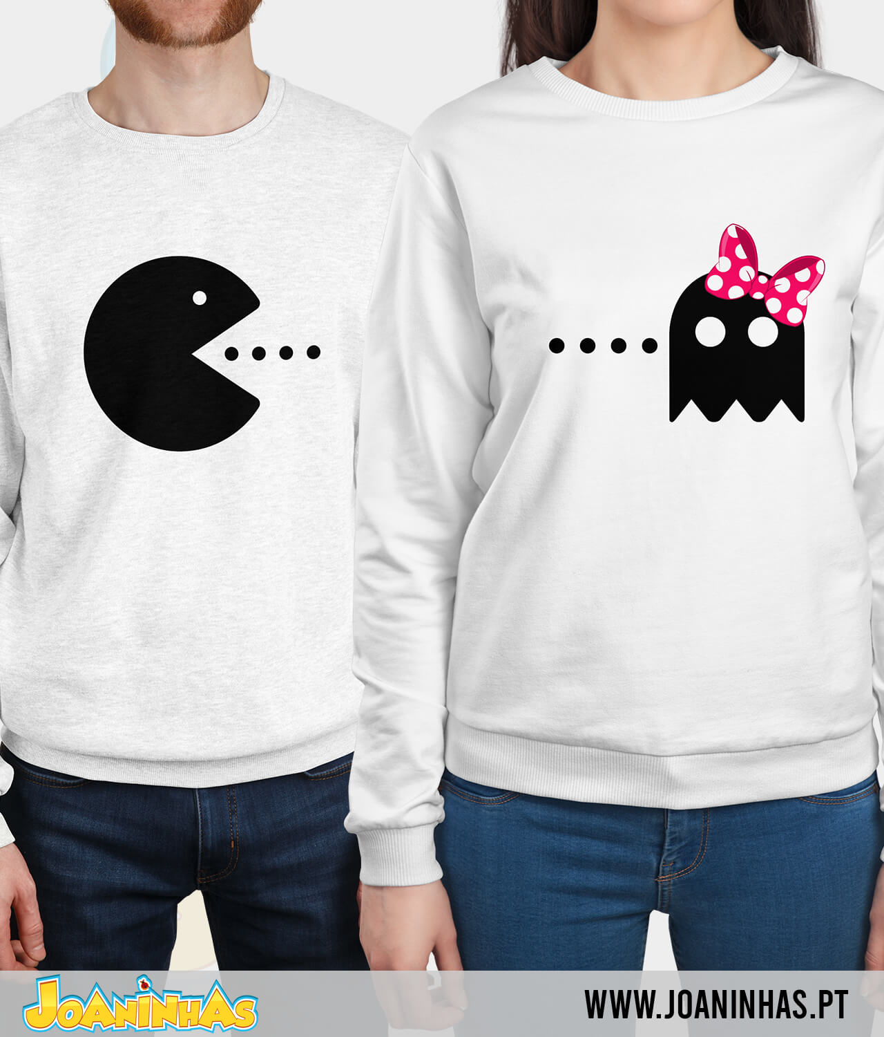 Não é todos os dias que vês um clássico arcade transformado em T-shirts Casal. O PacMan Pack conjuga a paixão pelos jogos retro com o ar adorável do amor que segue (e se complementa) em cada pontinho.