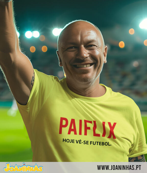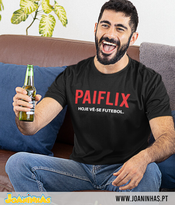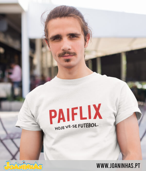 Com a palavra “PAIFLIX” estampada a vermelho em destaque e a frase “Hoje vê-se FUTEBOL” logo abaixo, esta t-shirt capta na perfeição o espírito de um verdadeiro maratonista de partidas. Não há episódios, há jornadas. Não há spoilers, há resultados ao vivo. E há sempre espaço para prolongamento (e uma bifana).