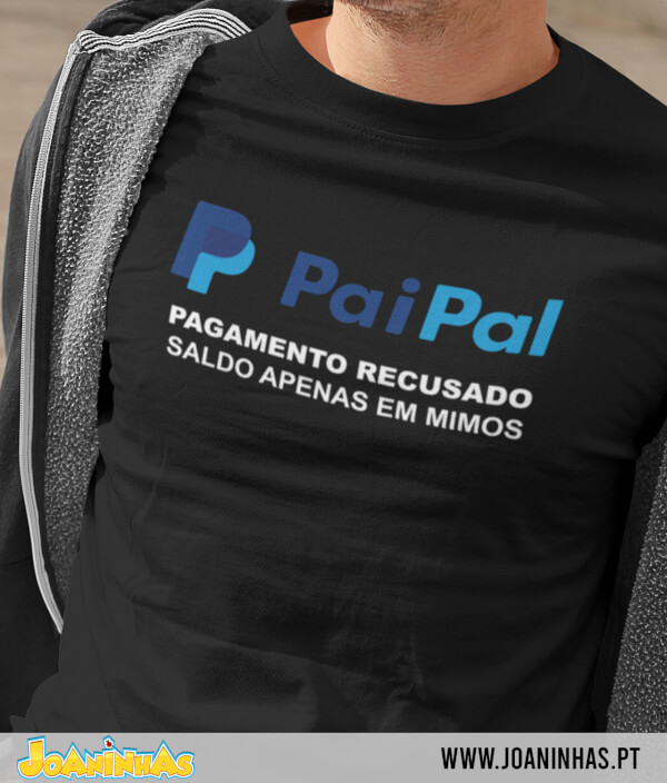Esquece cartões, apps e saldos complicados. O sistema de pagamento mais fiável e amoroso do mundo chama-se PaiPal Pagamento Recusado, Amor Ilimitado. Esta t-shirt é o recibo oficial de que, quando se trata de dar, o pai não precisa de código nem de confirmação por SMS — basta apareceres com um sorriso.