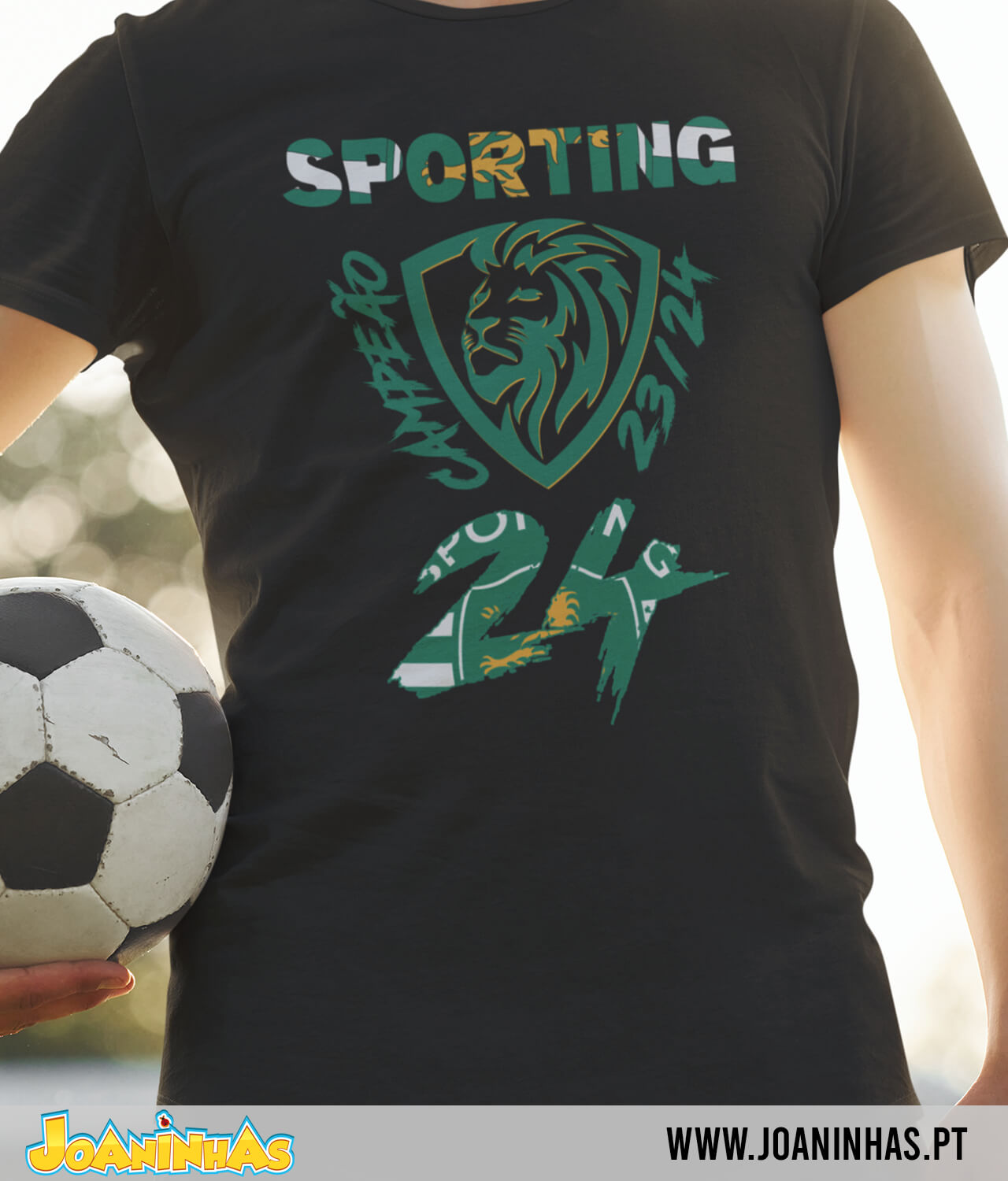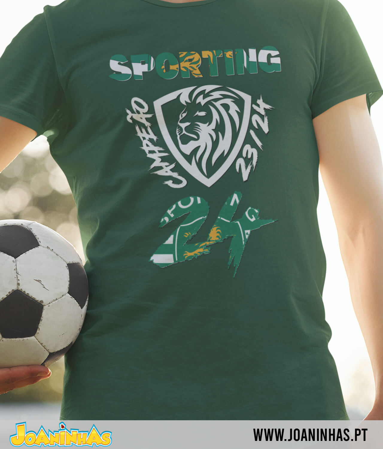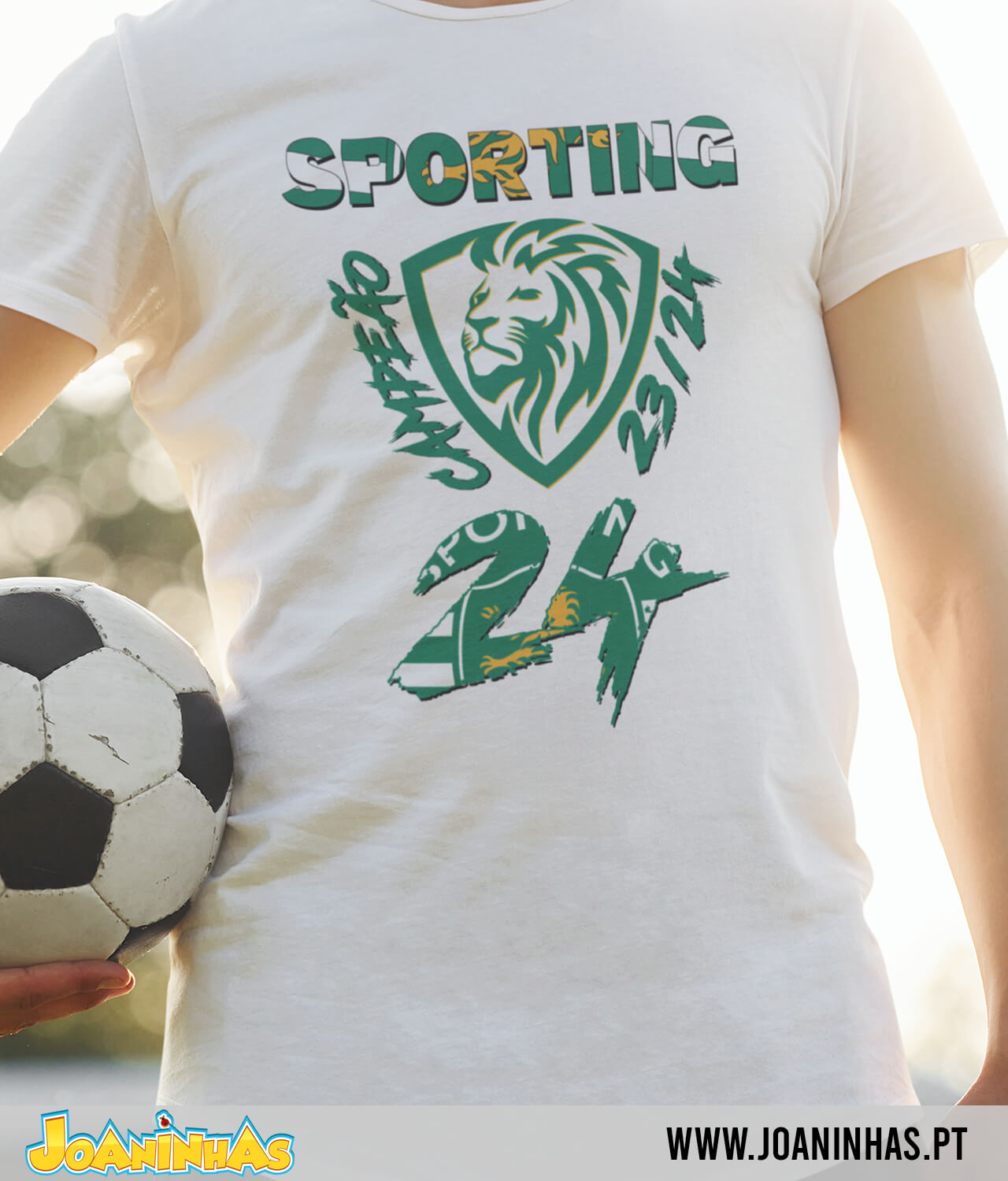 Veste o teu orgulho e apoio pelo Sporting com estilo e confiança. Garante já a tua T-shirt “Sporting Campeão 24” e mostra ao mundo o verdadeiro espírito leonino! Força Sporting!