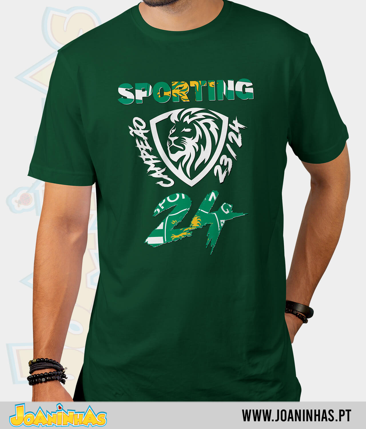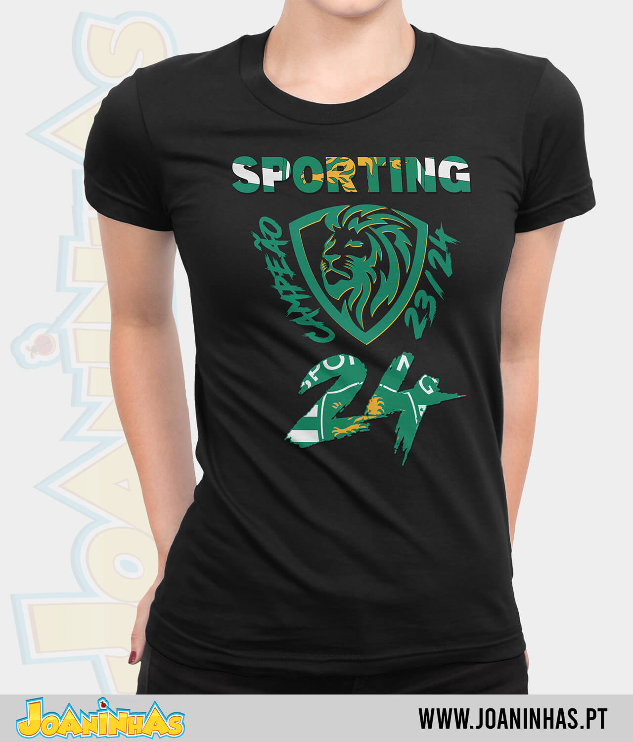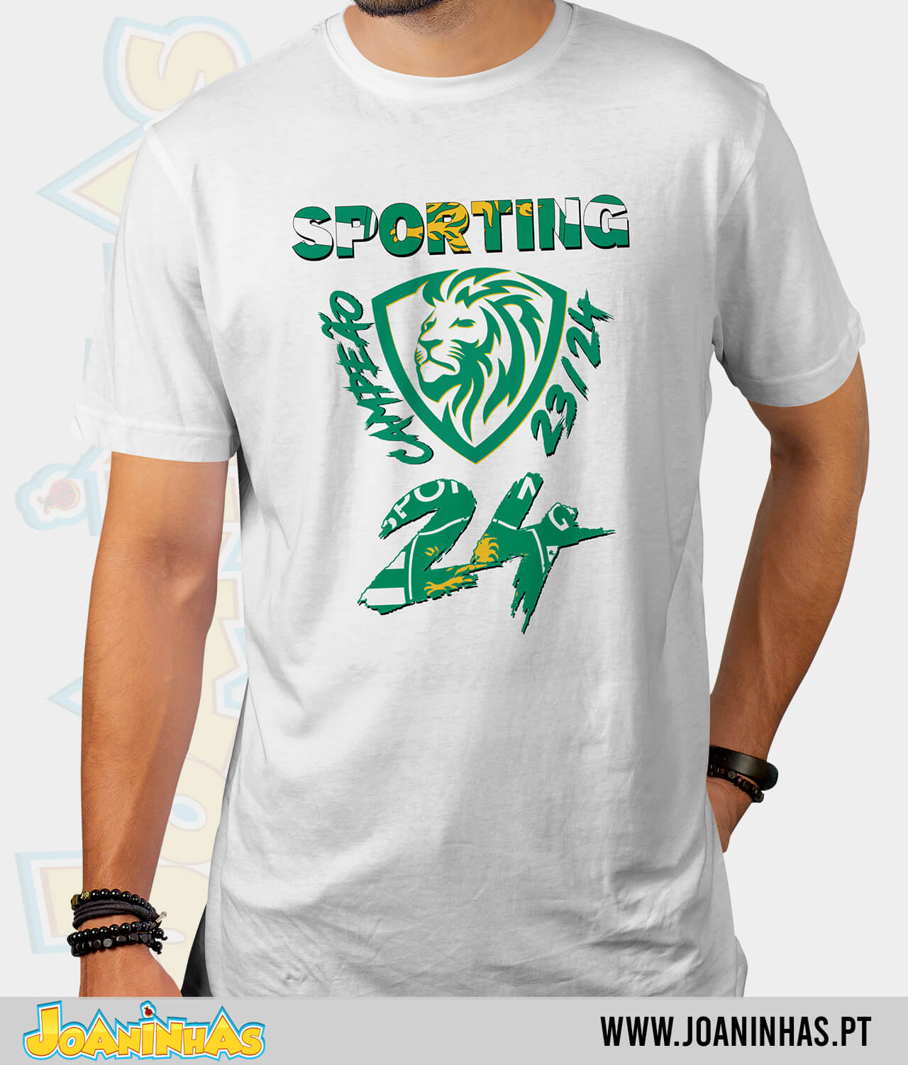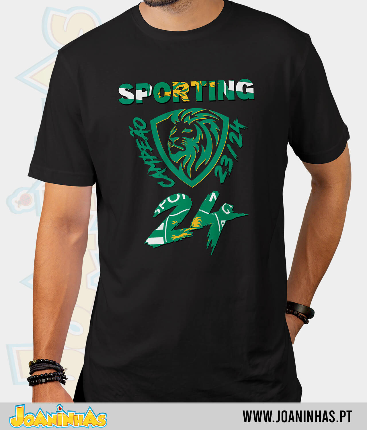 Desenvolvemos um design comemorativo que captura toda a emoção e a glória da conquista do 24º campeonato pelo Sporting. Cada detalhe do design foi cuidadosamente elaborado para refletir a história e a paixão do nosso clube, puxando pelos elementos vibrantes que celebram esta conquista histórica. Esta não é apenas uma T-shirt, é uma verdadeira obra de arte que orgulhosamente exibe o nosso amor pelo Sporting!