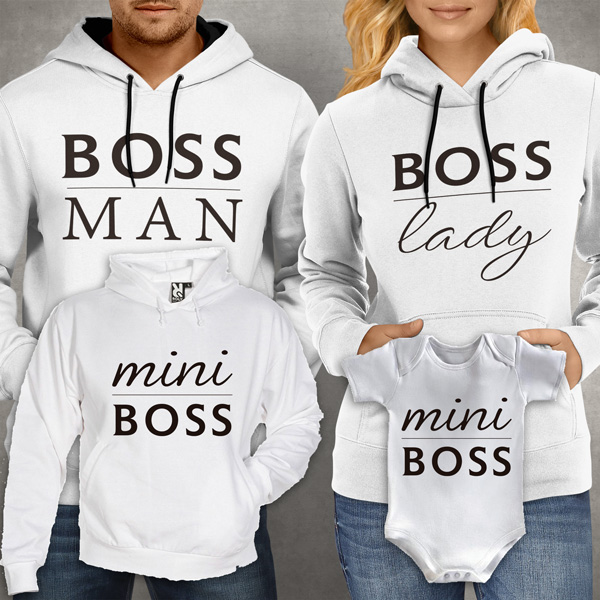 Este produto existe também na versão Mamã Sweatshirt com Capuz The Boss Mulher e na versão Papá Sweatshirt com Capuz The Boss Homem .